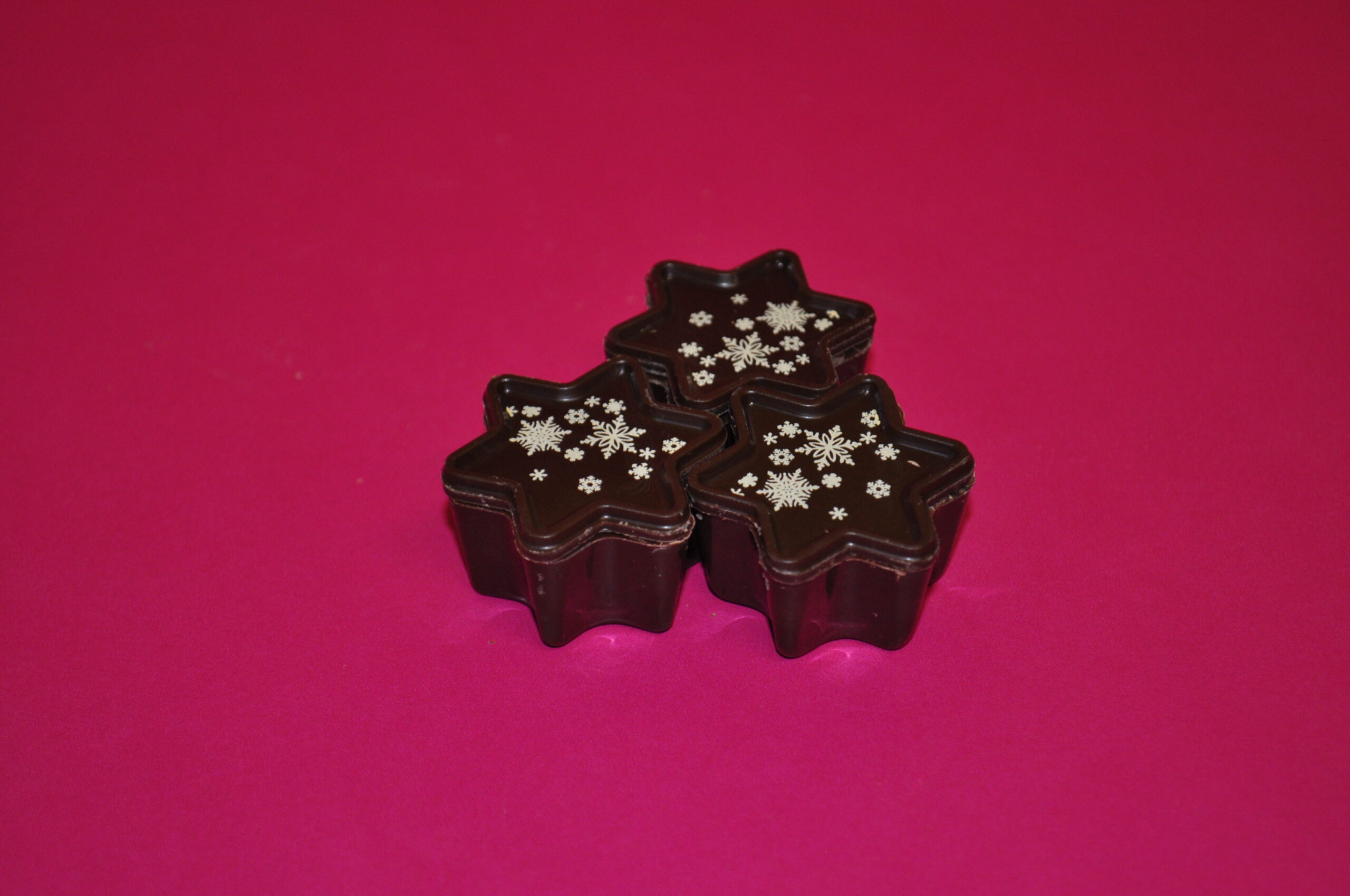 Zutaten: Zucker, Kakaokerne, Haselnüsse, Kakaobutter, Emulgator: Sojalecithin, Vanille, natürliches Aroma, natürliche Aromastoffe, Farbstoff: E100